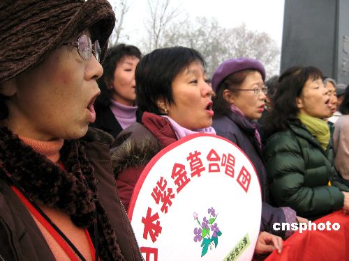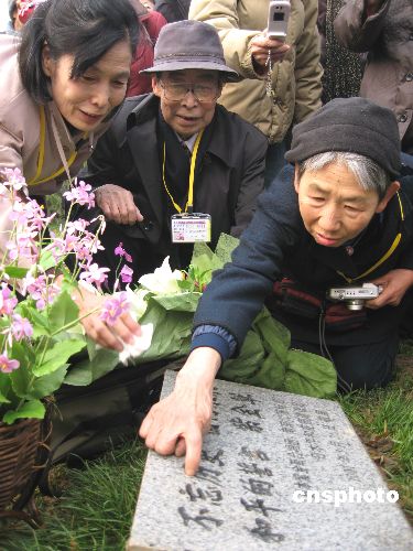 十二月十四日上午,日本友人在南京紫金草花園紀念碑前參加揭牌儀式。當日,紫金草合唱團的一百五十一名友好人士,在侵華日軍南京大屠殺遇難同胞紀念館新館唱起和平歌曲,并將他們親手制作的紫金草紙花贈給新館。位于新館和平公園內(nèi)的紫金草花園由此正式揭牌。中新社發(fā) 朱曉穎