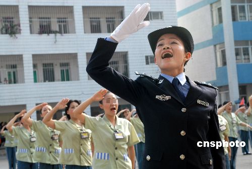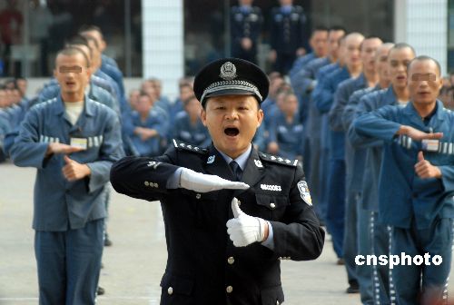 2007年12月26日,海南省瓊山監(jiān)獄舉行服刑人員“心靈手語(yǔ)操”比賽,7支代表隊(duì)共700多名服刑人員參賽,他們以此特別方式迎接即將到來的新年。服刑人員在手語(yǔ)操比賽的表演中,得到傳統(tǒng)文化的熏陶,增強(qiáng)了積極改造的信心。中新社發(fā) 善平 攝