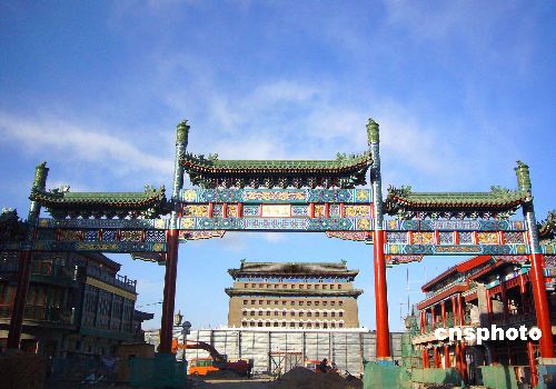 新年伊始,復建后的北京前門五牌樓在藍天的映襯下顯得格外美麗壯觀。經過7個多月的修繕,正陽橋五牌樓隨前門大街古街的改造,率先展現真姿芳容。本次修繕嚴格按照歷史照片和文字記載進行,照原樣、原工藝在原地重新復建。中新社發 玉龍 攝