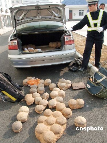 圖:湖北襄樊高速公路巡警截獲55枚恐龍蛋化石
