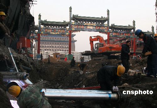 北京前門步行街改造工程施工忙