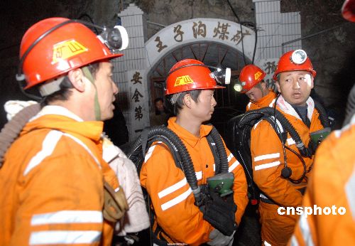 圖為救援人員進(jìn)入失事坑道展開搜救。