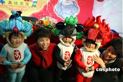 一月十六日,奧運冠軍鄧亞萍(左二)現身北京奧運會特許商品旗艦店,為《奧運寶寶》鎖形金銀紀念章助陣簽售。中新社發 任海霞 攝