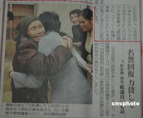 八十歲高齡的海南“慰安婦”受害者原告代表黃有良老人一月十九日深夜從東京返回?。老人披露,二審?fù)彆r,法官除詳細(xì)地了解老人受凌辱的事實經(jīng)過外,還首次詢問“慰安婦”經(jīng)歷給原告后來六十多年人生帶來的不幸尤其是造成的精神創(chuàng)傷。二00一年七月,黃有良等八名海南“慰安婦”受害幸存者向日本政府提起訴訟,要求日本政府公開道歉還其清白,并給予相應(yīng)賠償。二00六年八月一審敗訴,同年底原告再次上訴。中新社發(fā) 王辛莉 攝