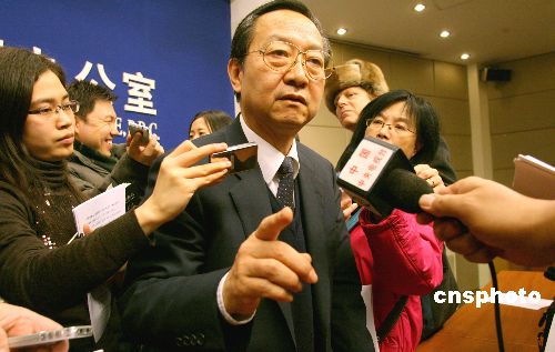 1月22日,國務院新聞辦舉行新聞發布會,國家安全生產監督管理總局局長李毅中、監察部副部長王偉,公布幾起重特大事故的調查處理結果,并答記者問。李毅中表示,不是所有事故背后都有權錢交易等腐敗現象,但是我們把調查腐敗現象作為事故查處的必備程序。今天通報的5起事故,湖南省鳳凰縣堤溪沱江大橋、山西省臨汾市蒲縣蒲鄧煤礦,這兩起事故背后都有腐敗問題。圖為李毅中在回答記者的提問。中新社發 張勤 攝
