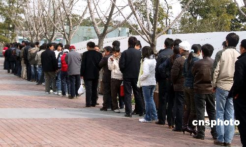2008年1月23日,因鐵路上海站售票改為提前10天,欲提前11天購票的旅客大量涌向上海南站通宵排隊,人數足有數千人。中新社發 紹常 攝