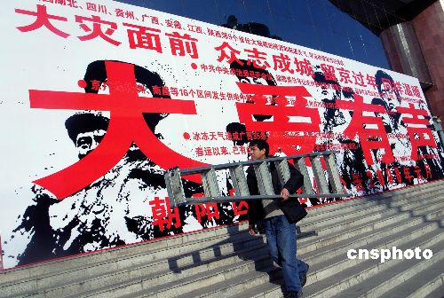 圖:北京首塊抗擊雪災的公益廣告牌現(xiàn)身街頭