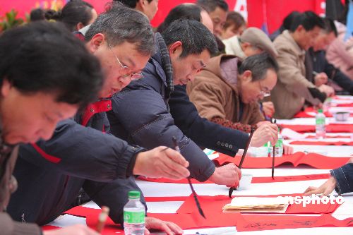 圖:重慶榮昌百名書法家冒寒上街義務寫春聯