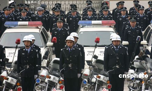 2月3日,公安警察莊嚴(yán)宣誓。當(dāng)日,重慶永川區(qū)公安局舉行“2008東亞女足錦標(biāo)賽安保工作誓師大會(huì)”,全局500名干警參加了誓師大會(huì),確保治安環(huán)境,確保女足錦標(biāo)賽順利舉行。中新社發(fā) 陳仕川 攝