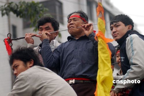 2008年2月16日,瓊海市,祈求五谷豐登,風調(diào)雨順。“軍坡”是海南民間的一個傳統(tǒng)節(jié)日,相傳源于唐代,為紀念六世紀我國嶺南著名俚人首領冼夫人而舉行的祭祀活動,距今已有1300多年歷史。獨特的民俗風情吸引了大批游客。中新社發(fā) 蒙鐘德 攝