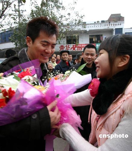 2月18日上午,著名足球解說員黃健翔在父親黃西孟和叔公黃振淳等親屬的陪同下,回到祖輩們居住過的重慶市永川區五間鎮新建村舊居,受到了鄉親們的夾道歡迎,同時到曾祖父黃大暹的墓冢前祭拜。中新社發 陳仕川 攝