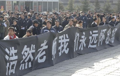 數百位專程從河北三河市趕來的市民打出悼念浩然的長幅。