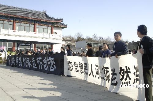 數(shù)百位專(zhuān)程從河北三河市趕來(lái)的市民打出悼念長(zhǎng)幅。