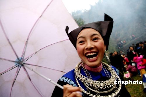 3月9日,有“千里苗疆門戶”之稱的貴州三穗縣臺烈鎮寨頭村的數千苗族同胞,云集村外“接龍橋”,歡度“祭橋節”。據悉,每年農歷二月二,當地都要殺豬宰牛舉行祭祀儀式,舉辦隆重盛大的“祭橋節”,以此來祈愿風調雨順、五谷豐登。