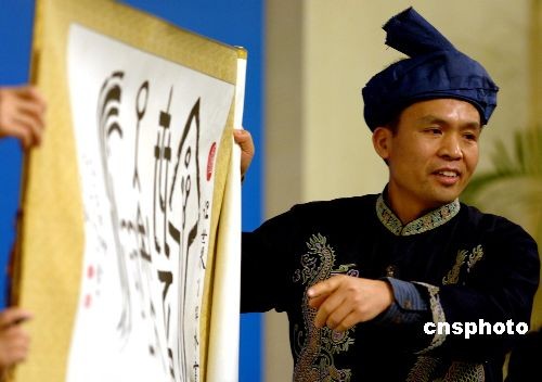 三月十日,貴州水族人大代表張加春在記者會(huì)上介紹“水文字”,并呼吁要大力保持“水文化”的獨(dú)特性。當(dāng)日,八位少數(shù)民族代表在北京兩會(huì)新聞中心接受媒體采訪。中新社發(fā) 王東明 攝