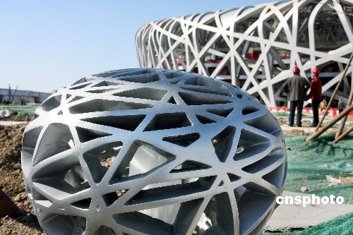 3月13日,中國國家體育場“鳥巢”正在加緊內部裝修,北京奧運場館和設施四月底前將全部竣工或完工圖為國家體育場“鳥巢”周邊安裝好的“小鳥巢”路燈與大“鳥巢”相映成趣。中新社發 鄭雄增 攝