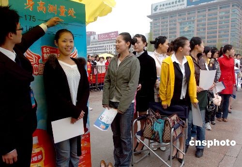 3月29日,中國新空姐招募大匯濟南選區在山東濟南開鑼。主辦方將目測海選賽場設立在廣場上,讓追逐藍天夢的女孩子接受市民評判。僅當日上午就有1000多名亮麗女孩前來應征。2008中國新空姐招募大匯由中國南方航空公司、中華全國青年聯合會、江蘇衛視聯合主辦。依托民航空乘人員專業考核標準,創新引入“民航旅客評選”制度,旨在打造國內最專業和最具影響力的空姐招聘平臺。中新社發 張侃 攝