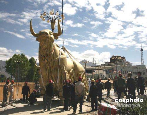 圖:拉薩市標(biāo)“銅牛”落戶新址