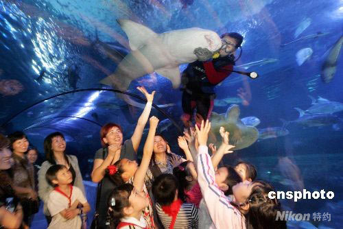 5月10日,福州市婦聯(lián)和晉安區(qū)婦聯(lián)及左海海底世界特邀二十位家庭貧困的外來工母親攜子女免費參觀左海海底世界,讓她們過上一個愉快的母親節(jié)。中新社發(fā) 小小 攝
