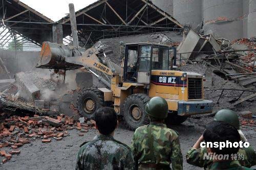5月14日,據(jù)抗震救災(zāi)前線的最新消息,救援隊伍已經(jīng)進入四川重災(zāi)區(qū)的所有市縣。圖為空降兵配合重型機械在什邡洛水拯救被掩埋的群眾。中新社發(fā) 譚超 攝
