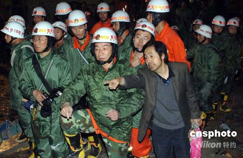 四川汶川縣5月12日發生7.8級地震后,北川縣北川中學受到極大的迫害,將近三千名的學生中僅有一半學生生存,另一部分學生因樓房倒塌而遇難或受傷。抗震消防隊員不顧艱險連續工作,利用不同工具挖掘被壓人員,并及時成功搶救出一批學員。圖為綿陽一位建筑設計人員輔助施工人員進行搶險救災。中新社發 鄒憲 攝