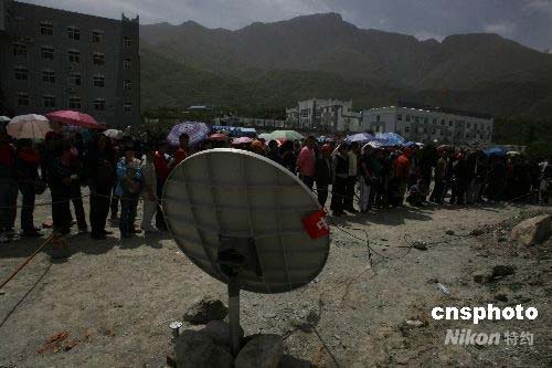 圖:茂縣開通首臺衛(wèi)星電話千人排隊(duì)等候