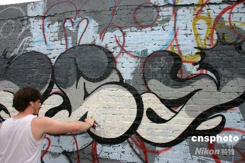 圖:年輕藝術家繪制奧運文化墻