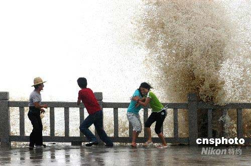 7月20日,江蘇連云港由于受今年第七號臺風“海鷗”和北方南下的弱冷空氣的共同影響,海面刮起7至8級東北大風,沿海出現巨浪巨涌,洶涌的海浪與岸邊的礁石相撞擊,卷起層層浪花。中新社發 王春 攝