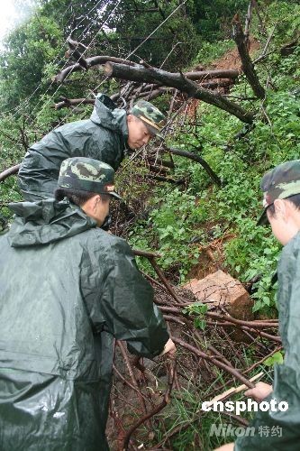 圖:“鳳凰”臺風飛過泉州 官兵搶修滑坡