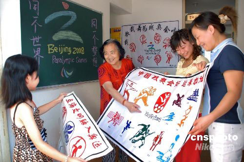 圖:錦州七旬老人剪紙為殘奧會加油