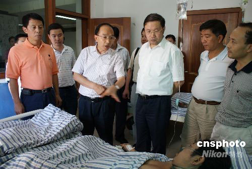 圖為四川省副省長李成云在興文縣中醫(yī)院看望受傷人員。