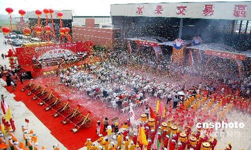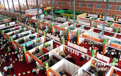 九月六日,首屆海峽兩岸農(nóng)產(chǎn)品采購訂貨會在福建南安閩臺農(nóng)產(chǎn)品市場舉行,來自兩岸農(nóng)產(chǎn)品經(jīng)銷商、采購商、企業(yè)家共三千多人出席。訂貨會設(shè)四百個標準展位,其中臺灣農(nóng)業(yè)主題館占一百一十七個。來自臺灣的一百多家企業(yè)集中展示蔬果、水產(chǎn)、肉類等臺灣農(nóng)業(yè)產(chǎn)品。當天,兩岸客商共簽訂農(nóng)業(yè)合作項目及購銷總金額十九點六億元人民幣。圖為展銷會四百展柜無虛席。中新社發(fā) 傅丹丹 攝
