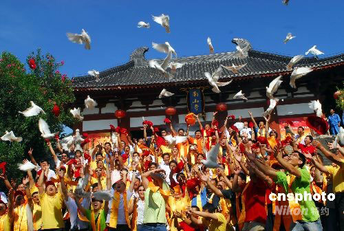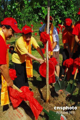 2008年9月6日至7日,海南省血液中心組織137名海南省2006-2007年國家無償獻血奉獻獎金獎獲得者和促進獎獲得者,到三亞南山文化旅游區參加以“奉獻讓我如此美麗”為主題的“菩提之旅”。獻血者點燃祈福蓮花燈、放飛和平鴿,并共植19棵菩提樹,建成全國首創的無償獻血功德林。中新社發 善平 攝