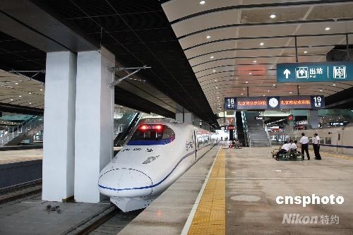 9月14日消息,京津城際高速鐵路自開通以來,備受市民青睞,尤其在早晚高峰和周末更是“一票難求”。為了滿足京津客流的高增長,北京鐵路局于9月14日零時起,每天再增開十對動車組列車開行對數。中新社發 追影 攝