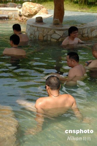 9月21日,廣東森波拉首屆“天體沐浴節”在一度假森林火山溫泉揭開神秘面紗,100多名“歡樂男女”沐浴在陽光、泉水、竹林花香中。“天體浴”被當作一種回歸自然和享受健康的方式在廣東逐漸被大眾所接受。中新社發 梁永強 攝