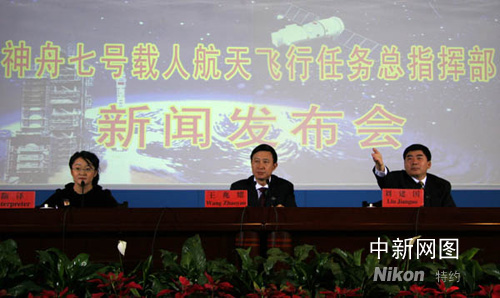 神舟七號載人航天飛行任務總指揮部在酒泉衛星發射中心舉行“神七”任務實施新聞發布會。作者:孫自法