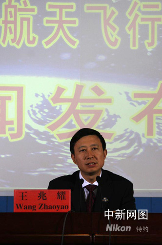 中國載人航天工程辦公室新聞發言人王兆耀介紹“神七”任務相關情況。作者:孫自法