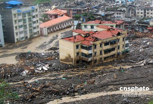 9月27日,四川北川泥石流覆蓋區,老縣城很多房屋都已被泥石流埋在地下。截止9月26日早上7點,已造成16人死亡,48人失蹤,部分地區交通、電力、通訊中斷。 進入北川縣城的必經路段,“三道拐”變成兩道拐,幾道細流從上而下匯聚成一條“小溪”直瀉而下,曾經深深的山溝已被泥石填平,成了一個開闊的河灘。供生者紀念的北川老縣城地震遺址,被兩條從山谷傾瀉而下的泥石流掩埋大半。據悉,最深處的污泥達40米以上。 同時被添平的還有以前這條溝里錯落有致的建筑。現在有的只剩下一個屋頂,或者兩三層顯露在外面。整個北川老城區大部分被泥石填埋在地下。當地人介紹,最上面的房子最多的埋了四五層,大部份地震中未倒的建筑都被埋了兩到三層。中新社發 胥輝 攝