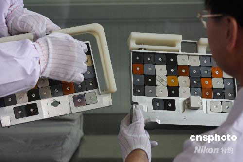 10月6日,中科院蘭州化物所科研人員將暴露于太空環境的空間材料試驗樣品與地面模擬空間環境試驗的樣品進行對比。專家們希望通過試驗,能夠找出科學、合理、準確的實驗參數,建立相關實驗規范,最終通過地面模擬裝置,能夠知曉太空會發生怎樣的變化,指導發展高性能空間潤滑材料。中新社發 殷春永 攝