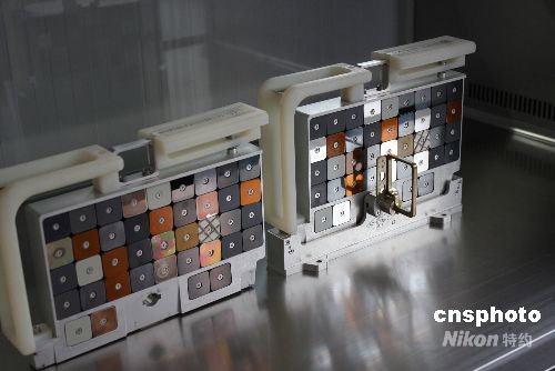 圖:“神七”搭載固體潤滑材料啟封取出