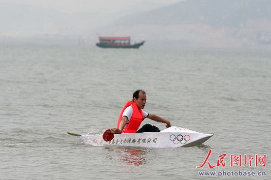 2008年10月13日上午,“紙船載人漂流第一人”朱亞林搭乘著自己親手打造的紙船下水開始試航。在使用乒乓球拍當做雙槳航行大約五百米后,朱亞林順利靠岸,完成試航。