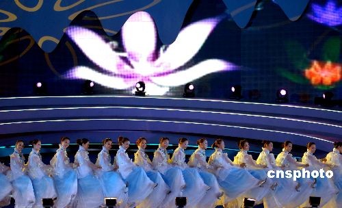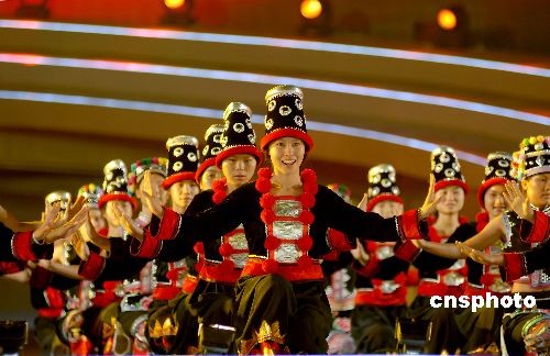 10月22日,廣西“南寧國際民歌藝術(shù)節(jié)開幕式晚會——大地飛歌·2008”在南寧民歌廣場上演。原生態(tài)的《壯族大歌》、《苗族大歌》、《侗族大歌》、《瑤族大歌》,經(jīng)過重新編排后更具魅力。除了廣西本地民歌以外,還有來自東盟各國的經(jīng)典民歌激情上演。整個舞臺流光溢彩,聲色動人。中新社發(fā) 彭寰 攝