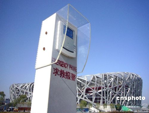 2008年11月2日,北京國家體育場“鳥巢”四周設(shè)立了求救報警器,確保中外游客在遇到突發(fā)情況時迅速報警,全方位的保障奧運中心區(qū)游客的人身安全。 中新社發(fā) 玉龍 攝