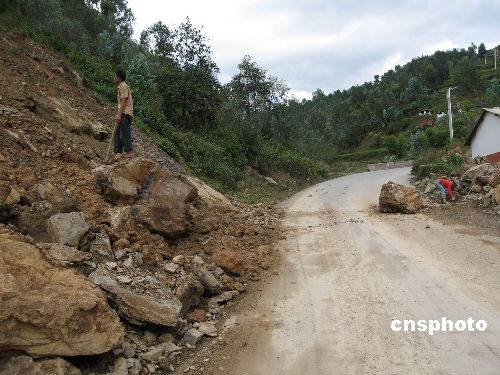 圖為3日記者在趕往災(zāi)區(qū)途中,行至云南南澗縣至景東縣之間通過一條剛剛疏通的的公路。