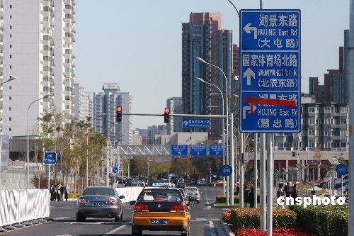 11月3日,北京奧林匹克公園東西向的4條主要道路已全部向社會車輛開放,無需通行證,但出于保護游客安全考慮,南北向主要道路目前仍封閉。中新社發 鄭雄增 攝