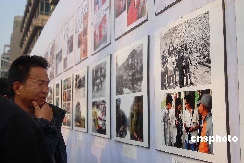 208年11月14日,時尚30年圖片展在杭州開幕,30多幅黑白老照片讓眾多市民回憶起小時候的生活場景,同時大學生也著各時代的時裝前來捧場。中新社發 引煒 攝