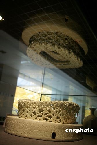 11月19日,陶瓷“鳥巢”作品亮相北京中華民族藝術珍品博物館。中新社發 九州 攝