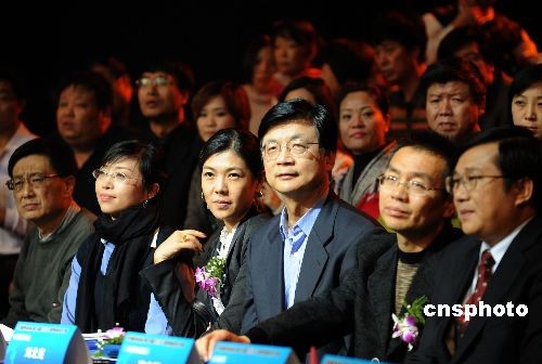 目前,2008“天語手機杯”第九屆CCTV模特電視大賽正在央視二套播出。經過激烈的爭奪曹軼霖和李昕岳分別奪得該賽男女冠軍。圖為總決賽時中國新聞社總編輯劉北憲(右三)擔任該賽評委。中新社發 廖攀 攝