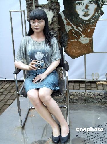 2008年11月26日,“中國姿態”首屆中國雕塑大展中展出雕塑作品《我的照片•我的夢》。作品中的小女孩就是中國希望工程的形象代表“大眼睛女孩”蘇明娟。中新社發 井韋 攝