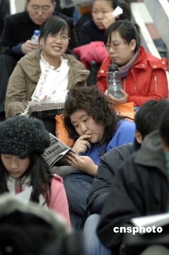 11月29日,大型部委聯合招聘會在北京中國國際展覽中心舉行,中科院、時代集團、中國日報社、百度等700多家單位招攬人才,近萬個工作崗位令求職者趨之若騖。據悉,金融危機下的就業形勢不容樂觀,許多應屆畢業大學生主動降低薪酬期望值,以期盡快就業。中新社發 徐曦弋 攝